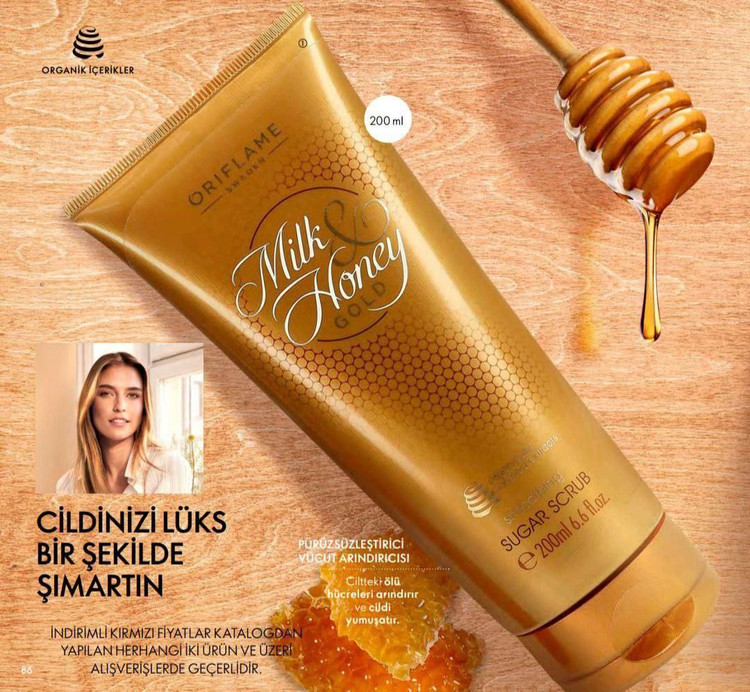 حاوی عصاره شیر و عسل که سلول های مرده را از روی پوست بر می دارد و تیرگی های خفیف پوست را از بین می برد و پوست را نرم و صاف می کند.